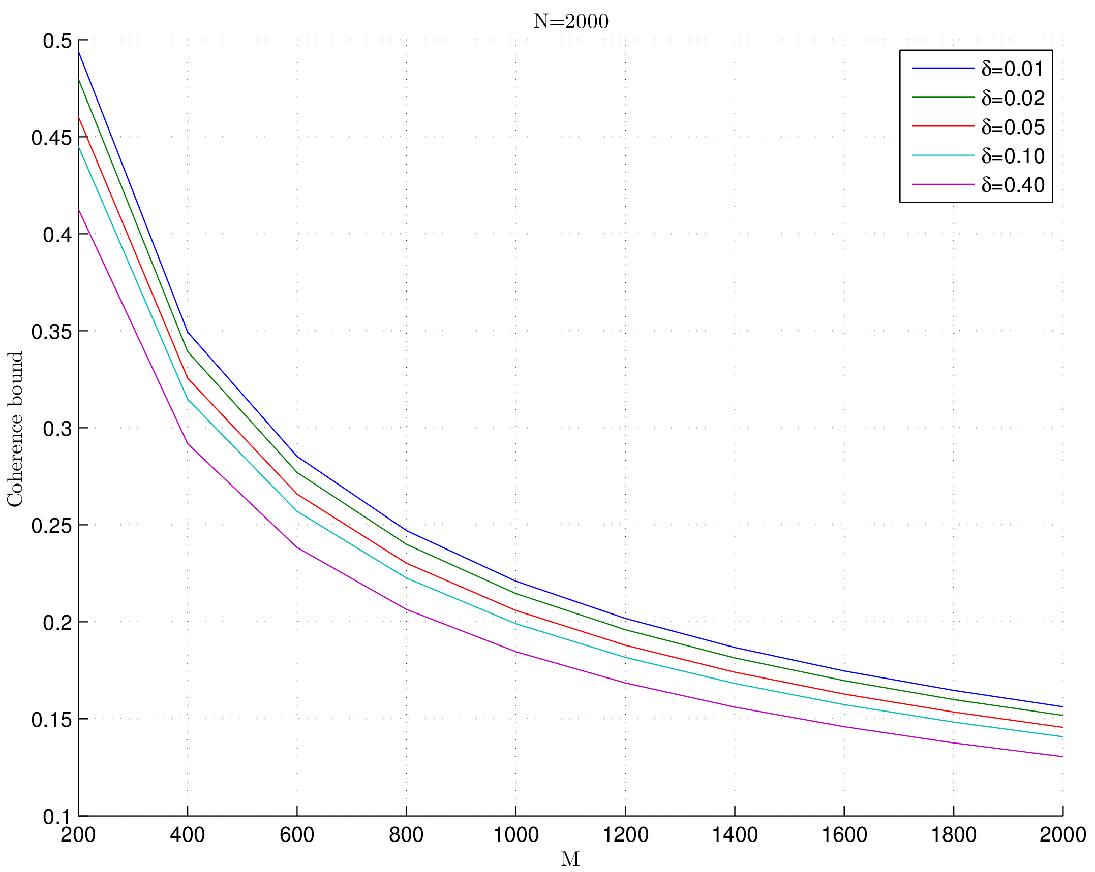 Fig. 13.2 Coherence bounds for Rademacher sensing matrices¶